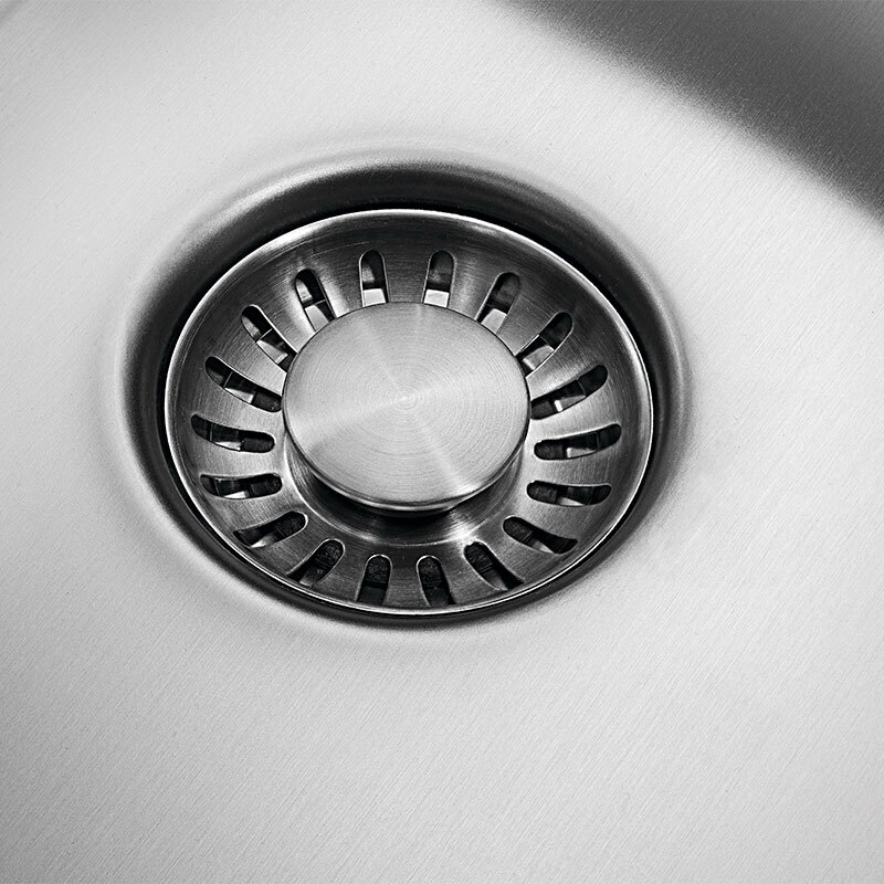 Fregadero Smeg VR12S34 en acero inoxidable AISI 304 con acabado cepillado, diseñado para instalación filotop, sobre o bajo encimera. Una cubeta de gran capacidad y 20 cm de profundidad con rebosadero integrado garantiza higiene y resistencia. Incluye sifón savespace, ganchos y silicona.