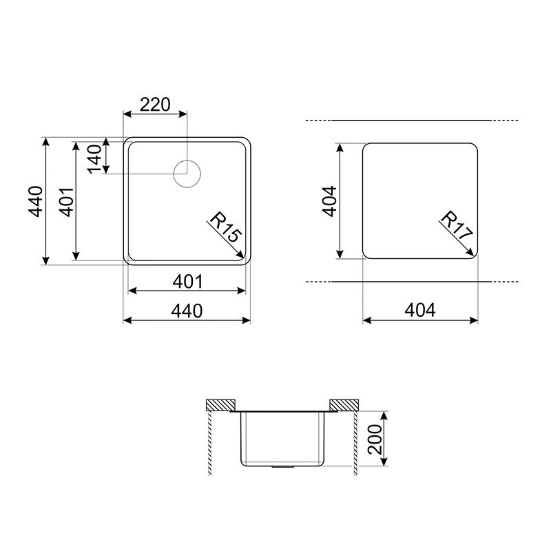 Fregadero bajo encimera Smeg VSTR40BRX – Cubeta 40x40x20 cm, Acero inoxidable AISI304, Bronce PVD cepillado