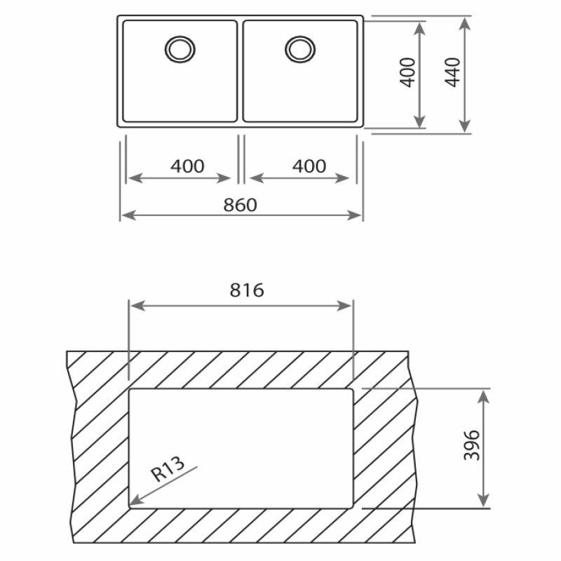 Fregadero bajo encimera Teka BE Linea RS15 2C 860 – Acero inoxidable 18/10, 86 cm, 2 cubetas 20 cm