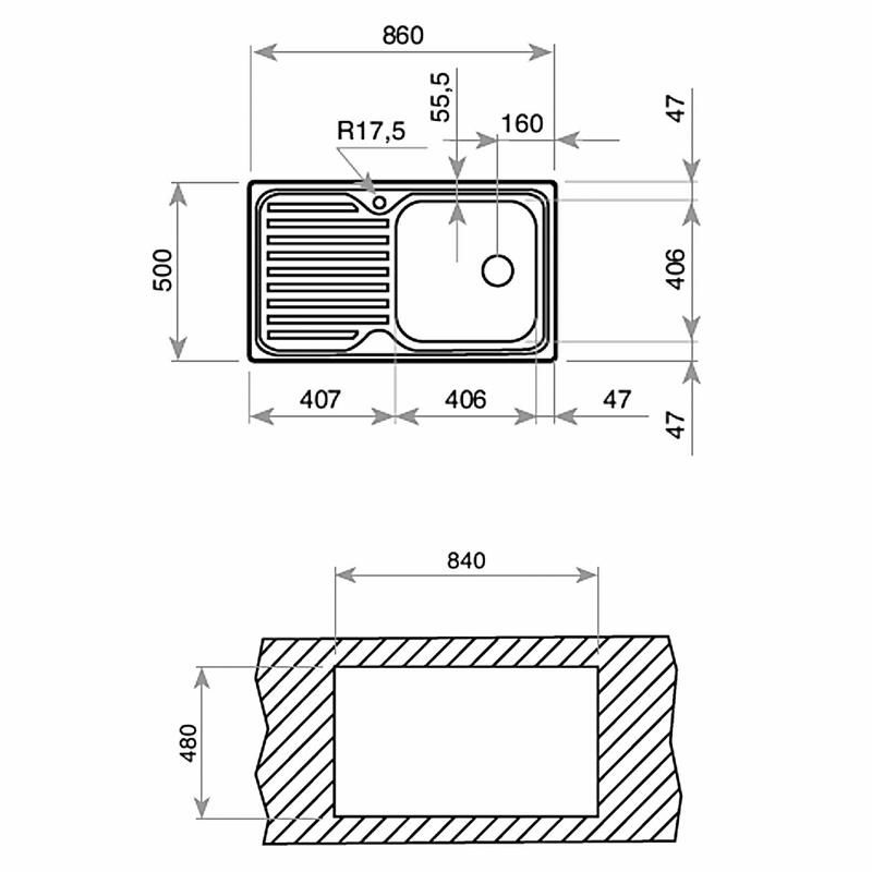 Fregadero encastrado Teka Classic 1C 1E reversible en acero inoxidable 18/10 con cubeta profunda de 19,0 cm y escurridor reversible. Medidas externas 86,0 x 50,0 cm y grosor de cubeta 0,8 mm garantizan resistencia y durabilidad. Incluye válvula cesta 3 1/2" y accesorios esenciales.