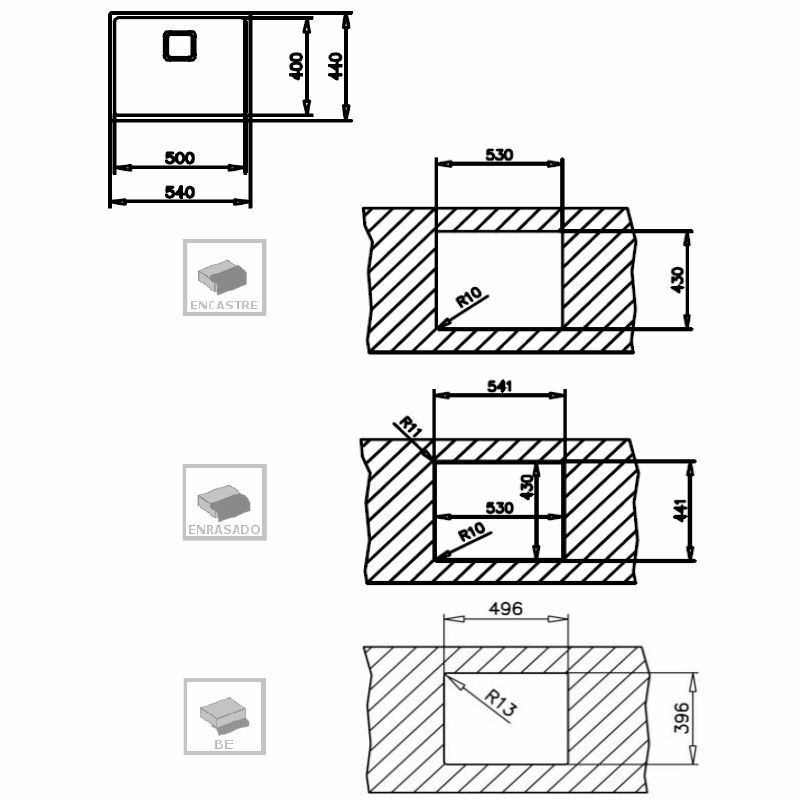 Sobre encimera, Enrasado/encastrado, Bajo encimera