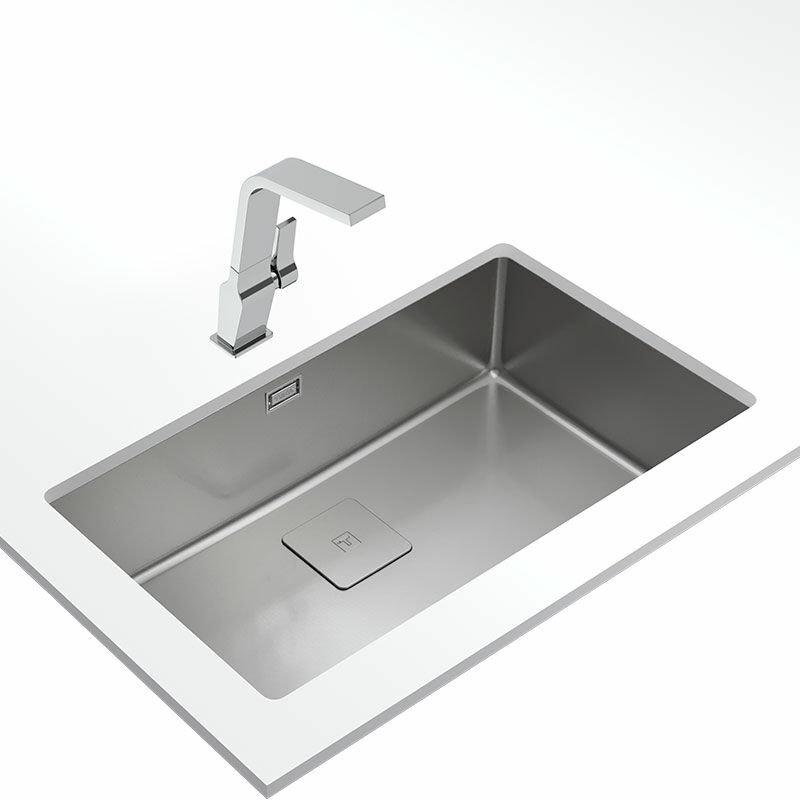 Fregadero de una cubeta en acero inoxidable 18/10 con tratamiento PureClean y acabado SoftTexture que facilita la limpieza y repelen el agua. Ofrece instalación múltiple sobre encimera, enrasado o bajo encimera, tecnología SilentSmart de reducción acústica y cubeta de 200 mm de profundidad. Incluye válvula canasta 3½" y sifón, tapa decorativa y clips de instalación, para uso en mueble de 80 cm.