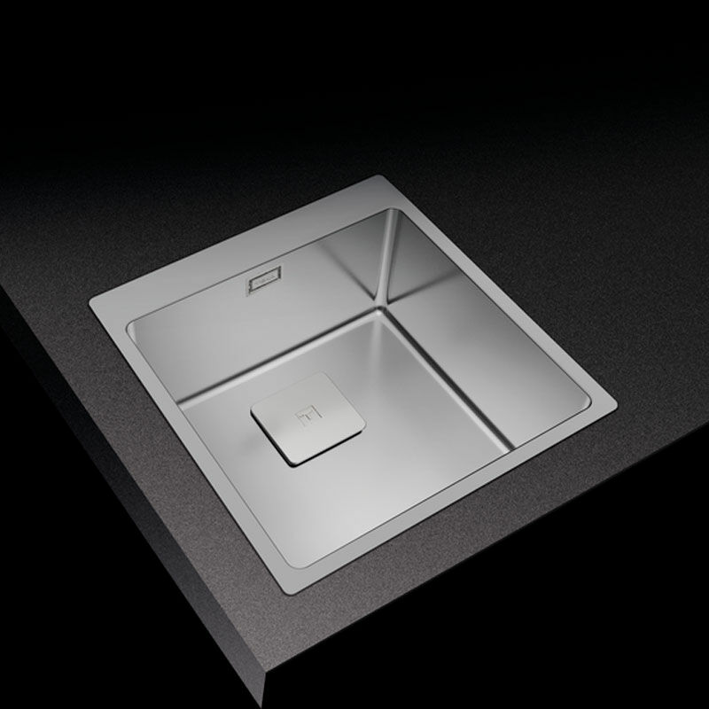 Fregadero Teka ForLinea RS15 40.40 de una cubeta fabricado en acero inoxidable 18/10 con radio R15 y cubeta de 200 mm de profundidad que facilita el lavado de menaje voluminoso. Ofrece instalación encastrada o enrasada, válvula canasta 3½" cuadrada con sifón, SilentSmart para reducción de ruido y clips de montaje incluidos.