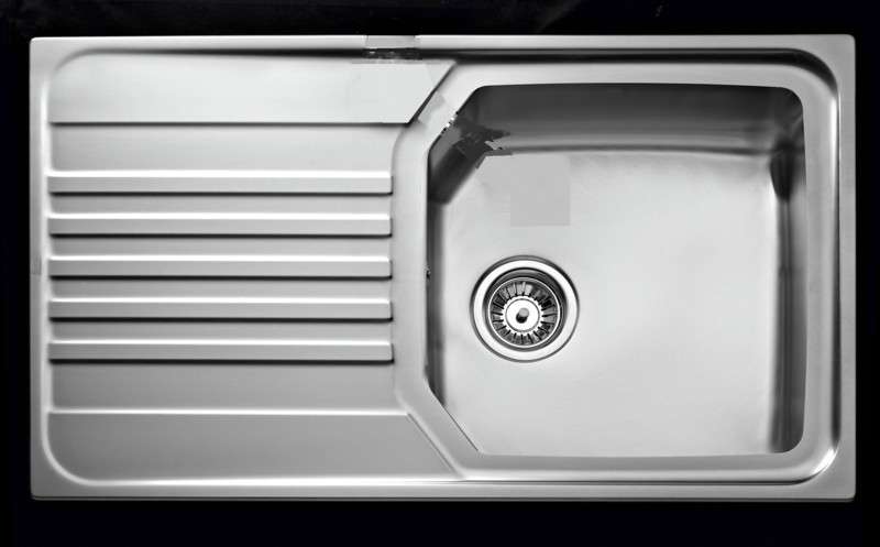 Fregadero Teka PREMIUM 1C 1E reversible de una cubeta y escurridor para encastre en mueble de 50 cm. Fabricado en acero inoxidable 18/10 con radio R25 y acabado pulido que facilita la limpieza. Cubeta 400×400 mm y 200 mm de profundidad, válvula canasta 3 1/2" incluida y construcción de chapa de gran espesor que garantiza resistencia y durabilidad.