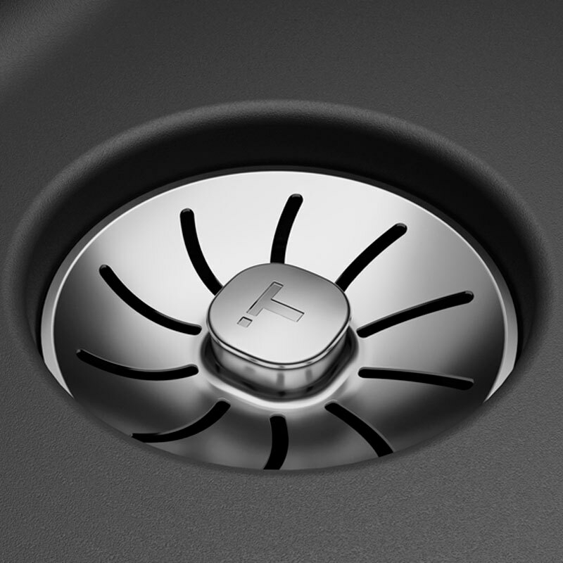 Fregadero Teka Tegranite+ Radea R10 40.40 M-TG en acabado negro diseñado para uso intensivo y fácil mantenimiento. Ofrece una cubeta profunda de 200 mm, instalación 2‑en‑1 (sobre encimera o bajo encimera), válvula canasta 3½" PerfectFlow, sifón y superficie resistente a impactos y decoloración.