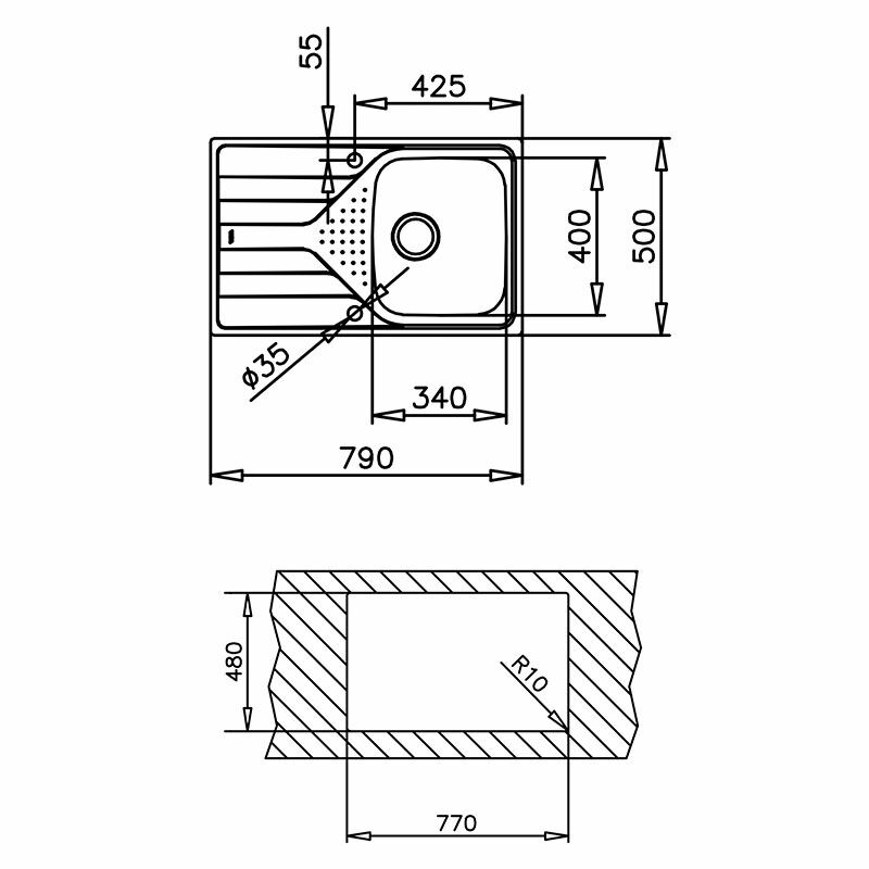 Conjunto fregadero Teka Universe 45 T-XP 1C 1E – Enrasado, 1 cubeta 17 cm, Escurridor reversible