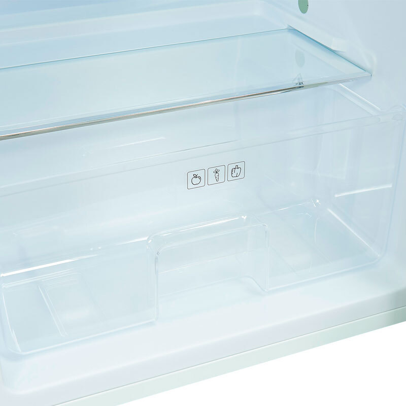 Frigorífico Exquisit RKS120-V-H-160E de una puerta en acabado rojo con diseño retro. Capacidad útil de 122 L, iluminación LED interior y cajón verdulero. Libre instalación, eficiencia energética clase E con consumo aproximado de 89 kWh/año. Funcionamiento silencioso (≈39 dB), estantes de cristal regulables y ruedas traseras para facilitar su colocación y uso diario.