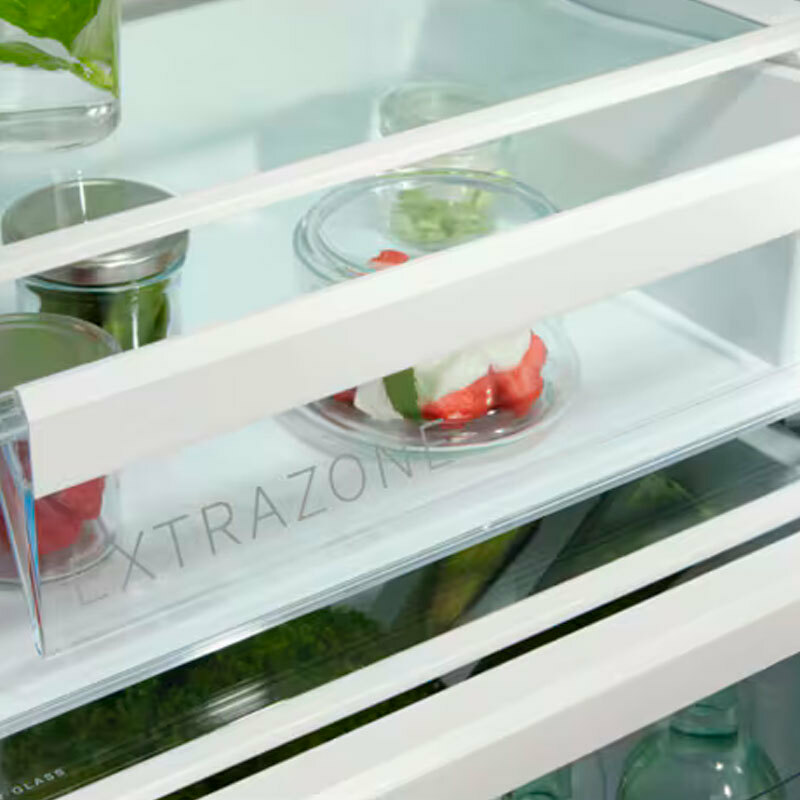 Frigorífico integrable AEG TK6DS181ES de una puerta y 310 L de capacidad, diseñado para empotrar en cocinas. Ofrece DynamicAir con ventilación radial para frío uniforme, compresor Inverter con garantía de 10 años, iluminación LED y cajón ExtraZone. Clase E, consumo 114 kWh/año y nivel sonoro de 32 dB.