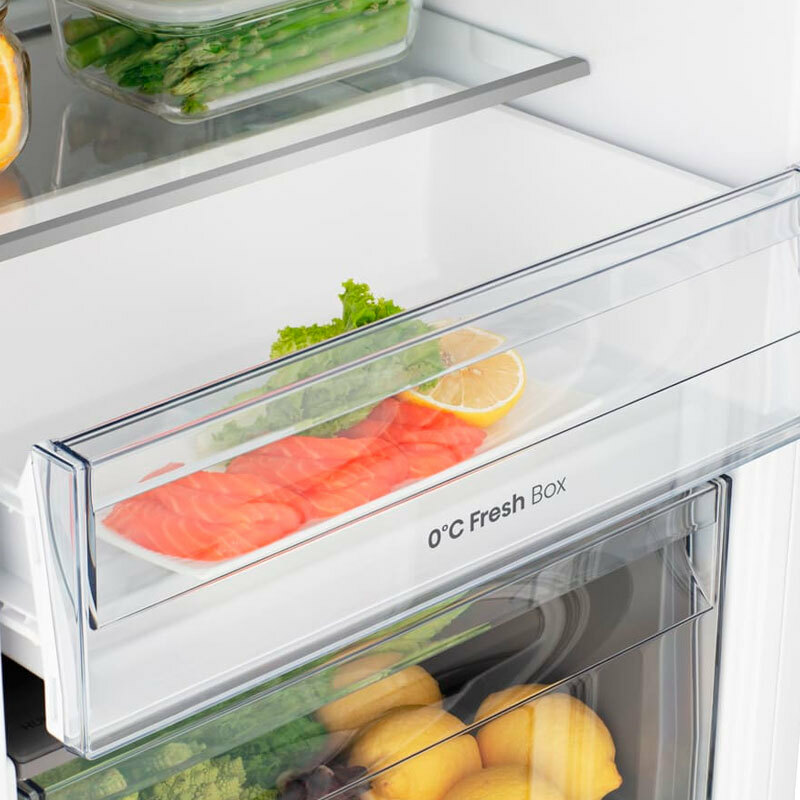 Frigorífico integrable Hisense RL3B303SAWE de una puerta y 300 L de capacidad, ideado para integración con puerta fija. Dispone de Total No Frost y tecnología Inverter para mantener temperatura homogénea y ahorro energético. Incluye Multi‑Air Flow, cajón de humedad, control táctil, iluminación LED, conectividad WiFi y puerta reversible, ofreciendo confort y conservación óptima de los alimentos.