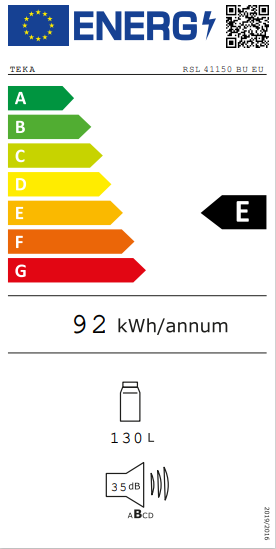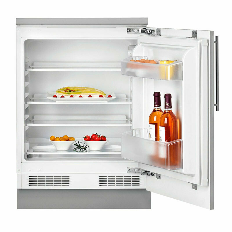 Frigorífico integrable bajo encimera Teka RSL41150BU de una puerta con capacidad útil de 128 L y bruta de 130 L. Clase energética A++ y consumo anual 92 kWh para un funcionamiento eficiente. Iluminación LED, puerta reversible, descongelación manual, 3 estantes de vidrio, patas ajustables y bajo nivel sonoro de 35 dB.