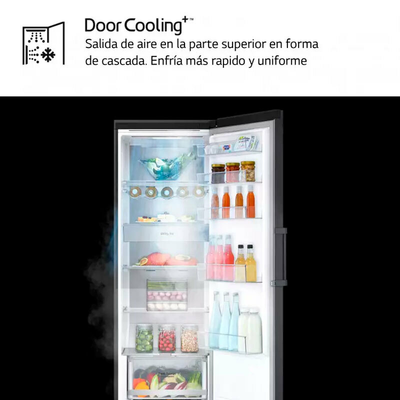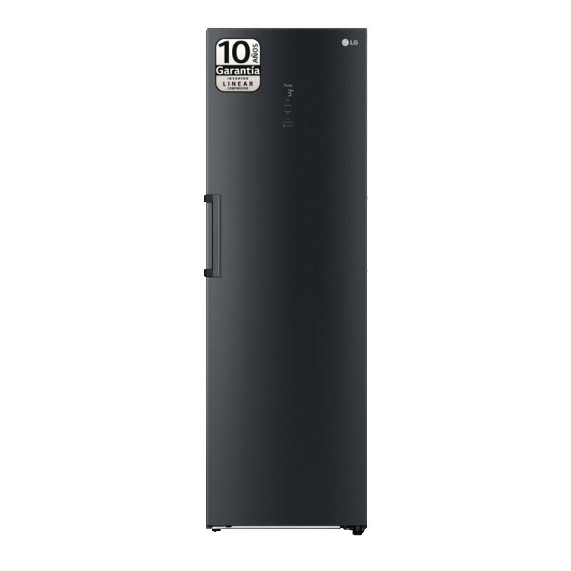 Frigorífico de una puerta LG GLM71MCCSX en acabado negro‑grisáceo mate que ofrece amplia capacidad y eficiencia energética clase C. Incorpora compresor Inverter Linear, sistemas Door Cooling+ y Linear Cooling, tecnología No Frost y luz interior LED para una conservación estable y cómoda.