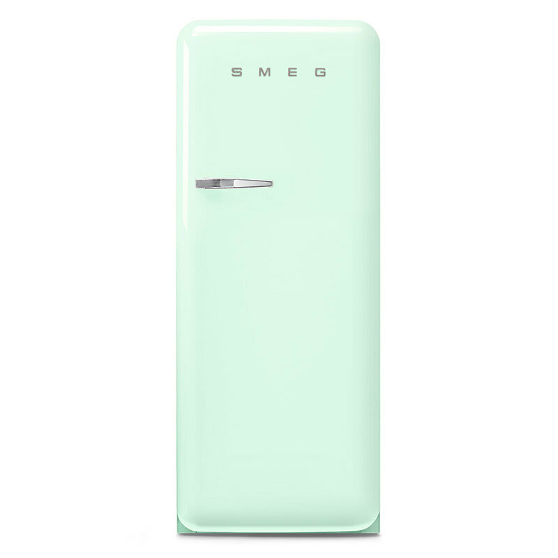 Frigorífico Smeg FAB28RPG6 en Verde Agua que fusiona estética retro 50's con prestaciones actuales. Ofrece 270 L totales (244 L nevera y 26 L congelador), sistema multiflow ventilado para frío uniforme, iluminación LED, bajo nivel sonoro y eficiencia energética clase C con consumo anual aproximado de 104 kWh.