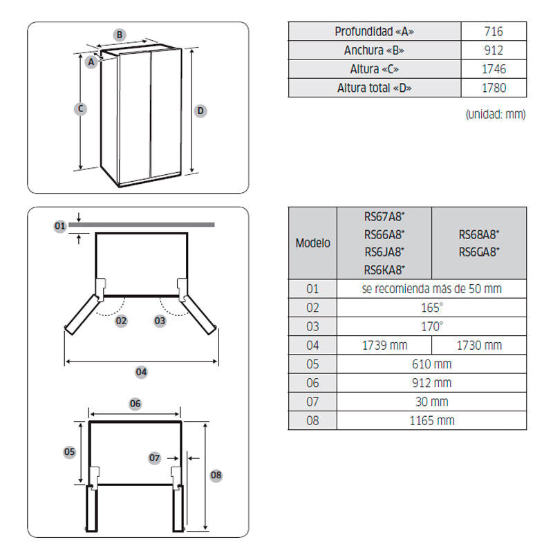 Frigorífico americano Samsung RS68A8831WW/EF – 634 L, Twin Cooling No Frost, Compresor Inverter 20 años