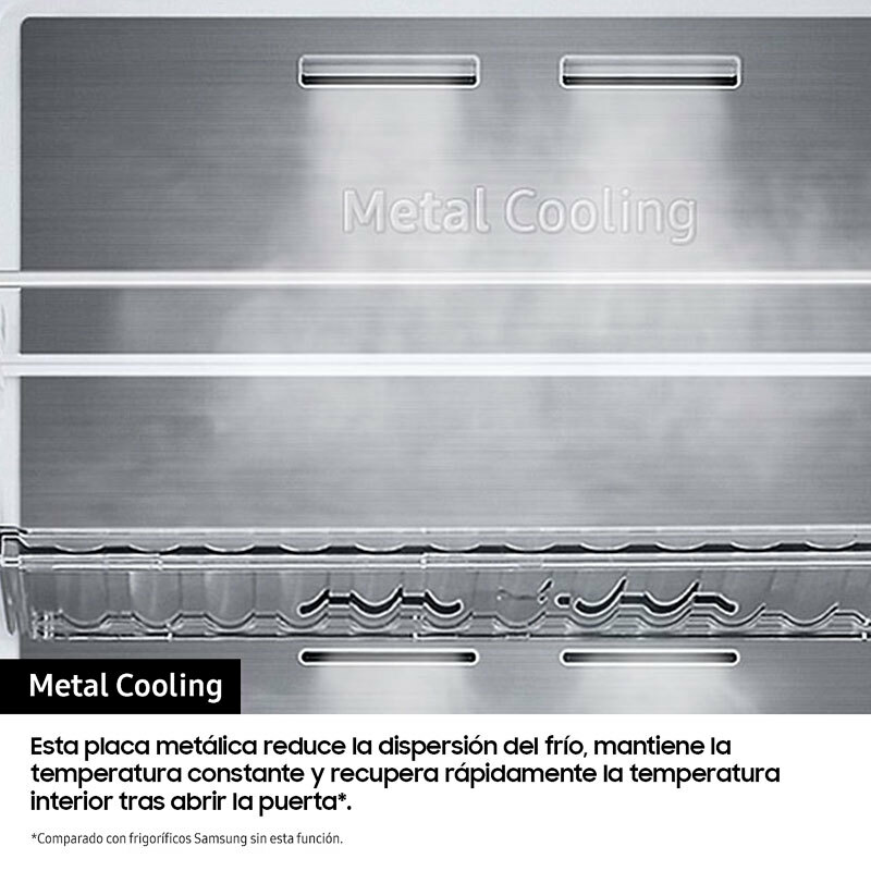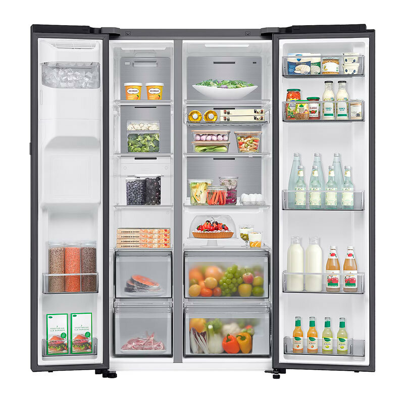 Frigorífico americano Samsung RS80F64KDFEF Grafito diseñado para almacenamiento amplio y eficiente con 640 L de capacidad total. Incorpora compresor AI Inverter y Mono Cooling para conservación uniforme, dispensador de agua y hielo, iluminación LED y conectividad SmartThings.