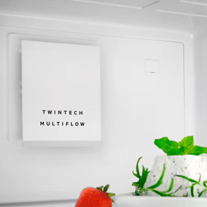 Frigorífico combi AEG ORC6M481EX de libre instalación con 481 L de capacidad total diseñado para conservar alimentos con tecnología TwinTech Total No Frost que mantiene la humedad óptima en el frigorífico y evita la escarcha en el congelador. Acabado acero inoxidable antihuellas, display táctil LED en puerta, iluminación interior LED y cajón ExtraChill para conservación a baja temperatura. Clase energética E y nivel sonoro 41 dB que garantizan un funcionamiento eficiente y silencioso.