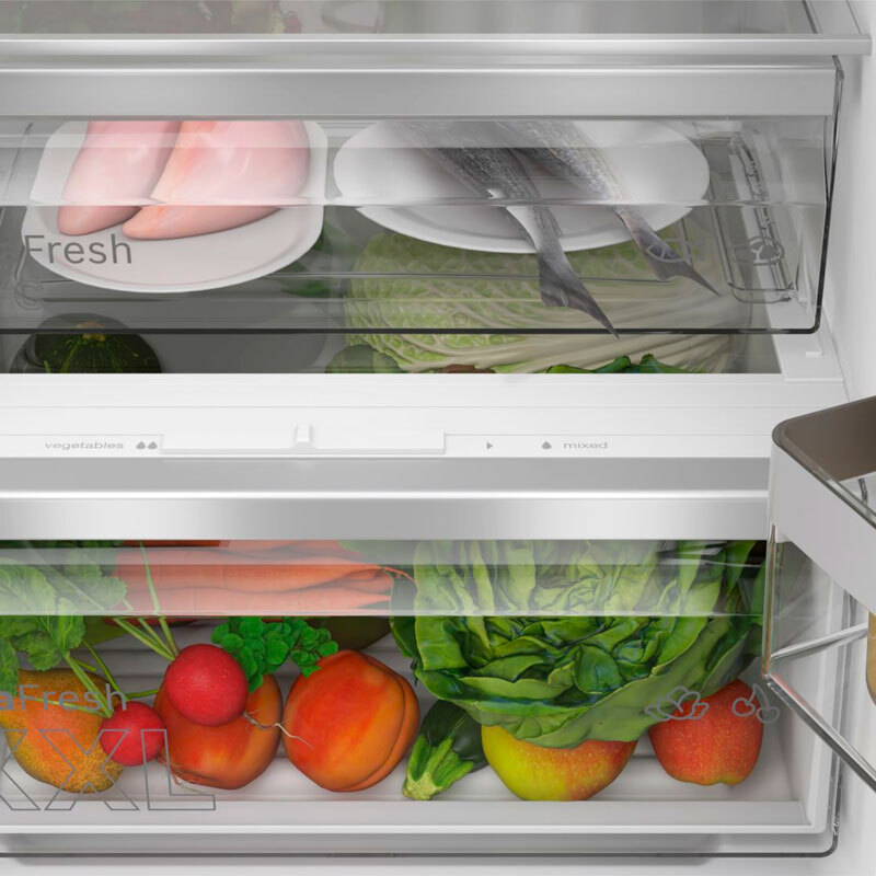 Frigorífico combi integrable Bosch KIN86VSE0 con 260 L de capacidad total (184 L frigorífico y 76 L congelador) diseñado para huecos integrados. Incorpora No Frost, cajones VitaFresh para conservación, iluminación LED y funcionamiento silencioso (35 dB). Clase energética E y consumo anual aproximado de 234 kWh garantizan equilibrio entre rendimiento y eficiencia.