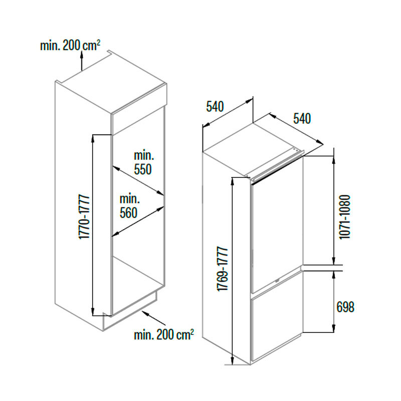 Frigorífico combi integrable Cata CI54177ST/D – 249 L, 39 dB, Clase E