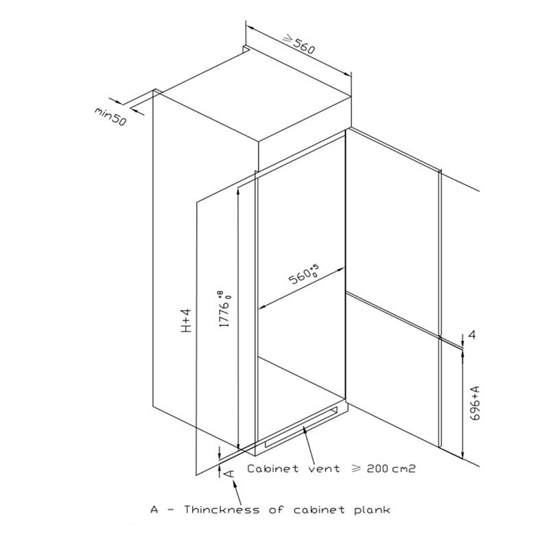 Frigorífico Combi Integrable Midea MDRE353FGE01 – Total No Frost, 248 L, 41 dB