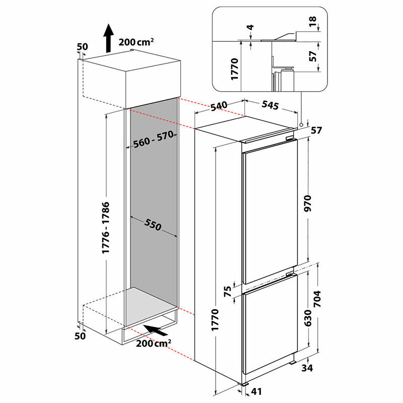 Frigorífico combi integrable Whirlpool WHC18 T323 – 250 L, Total No Frost, 32 dB