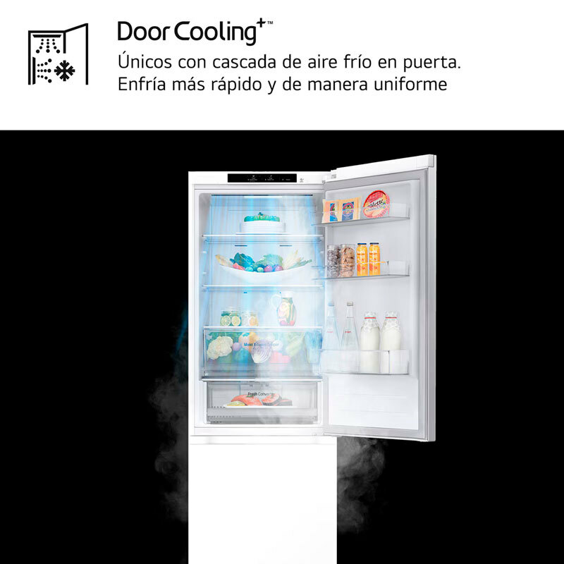 Frigorífico combi LG GBV3100ASW en acabado blanco que combina Total No Frost, DoorCooling+ y Linear Cooling para conservar alimentos más tiempo con temperatura estable. Capacidad amplia con congelador inferior, iluminación LED interior y compresor Smart Inverter de alta eficiencia que reduce consumo y ruido.