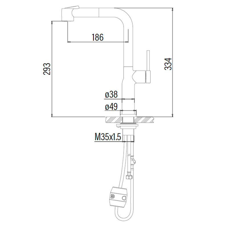 Grifo de cocina monomando Cata BSE Inox en acero inoxidable AISI 304 con acabado Inox. Diseñado con caño alto en L, caño extraíble con función ducha y giro 360º, aireador anticalcáreo con reductor de caudal y conexiones flexibles inox para una instalación fiable y ahorro de agua. Garantía 3 años.