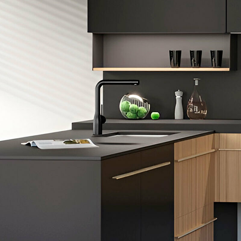 Grifo de cocina monomando Nobili con acabado grafito cepillado PVD que combina diseño y durabilidad. Equipado con cartucho cerámico Ø35 mm, limitador de caudal al 50% y caño giratorio 180° para mayor versatilidad. Construido en latón con flexibles inox Ø3/8" y aireador anticalcare, ofrece instalación monoforo y eficiencia en el consumo.