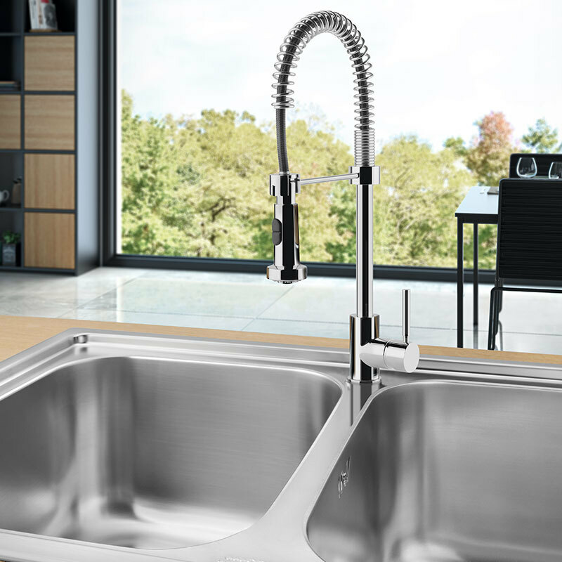 Grifo de cocina monomando Smeg MID9CR – Cromo, Ducha extraíble, Caño 360°