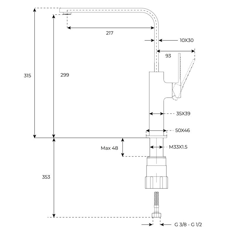Grifo monomando cocina Teka Brooklyn BKY 915 – Caño alto giratorio, Ahorro 5 L/min, Cartucho cerámico
