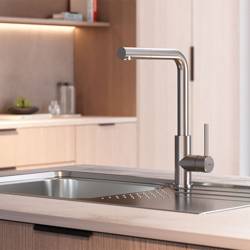 Grifo cocina Teka UNI 9331 – Caño alto extraíble, giro 360º y ahorro de agua