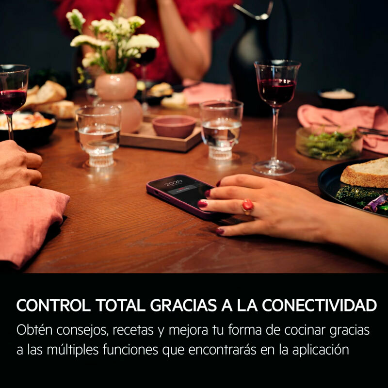 El AEG OU5PB41WSB es un horno pirolítico integrable de 72 litros con eficiencia energética A++. Ofrece 9 funciones y 45 programas automáticos, conectividad WiFi y control vía app. Incorpora limpieza pirolítica, mandos escamoteables, raíles telescópicos y puerta de 4 cristales para limpieza sencilla, cocción uniforme y mayor seguridad. Temperatura 30-300 °C y potencia total 3490 W.