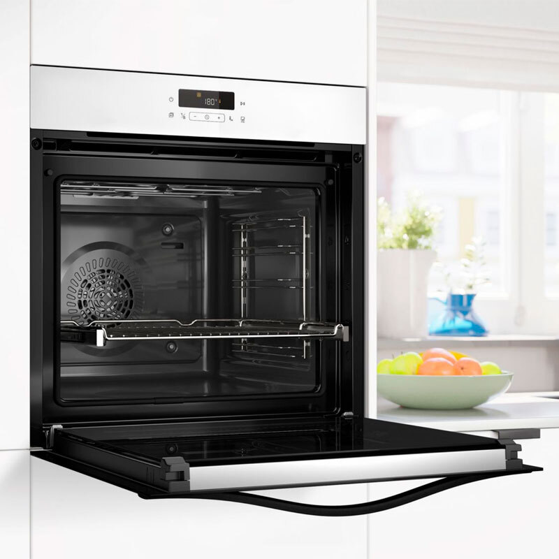 Horno Balay 3HD5829B3 acabado Cristal blanco, multifunción con cocción por vapor añadido y limpieza pirolítica combinada. Capacidad útil de 71 L, control táctil con display LED, raíles Flex 100% extraíbles y función Air Fry para cocciones crujientes y saludables. Clase energética A+, 3600 W, puerta con 4 cristales y baja temperatura exterior para mayor seguridad.