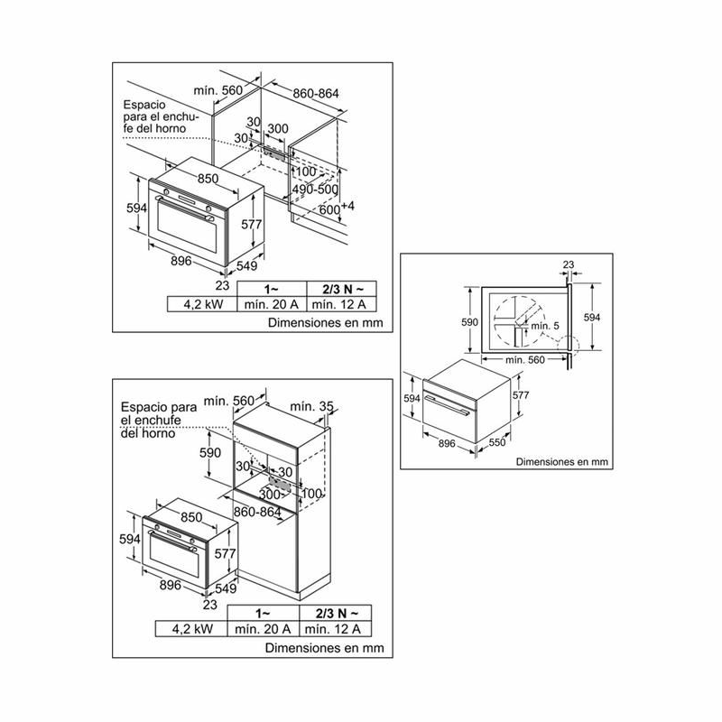 Altura mínima del hueco de encastre