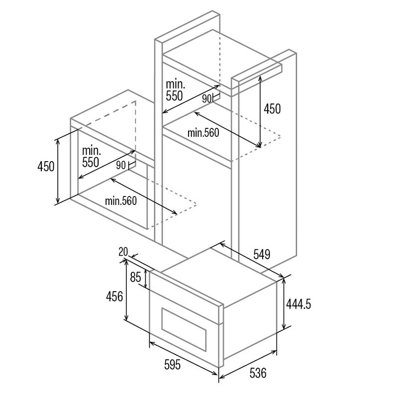 Altura mínima del hueco de encastre