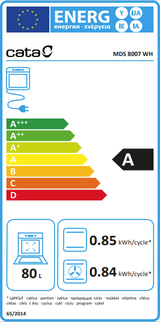 Horno integrable Cata MDS8007WH – 80 L, Clase A, 7 funciones