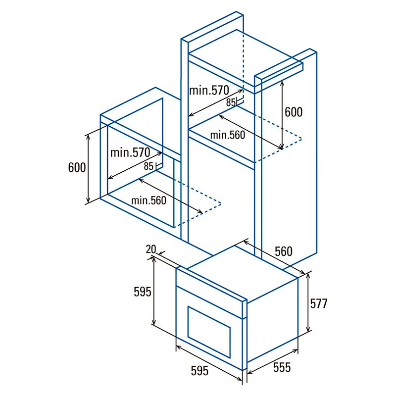 Calor superior e inferior; Calor superior e inferior con ventilador; Turbo; Grill; Doble grill; Grill con ventilador; Descongelar; Luz; Eco