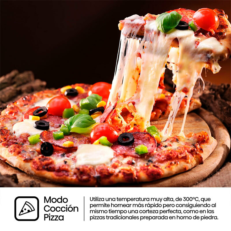 Even Bake; Air Fry; Pizza; Grill; Cocción lenta; Cocción multi-etapas; Calentamiento rápido; Modo congelado; Doble grill