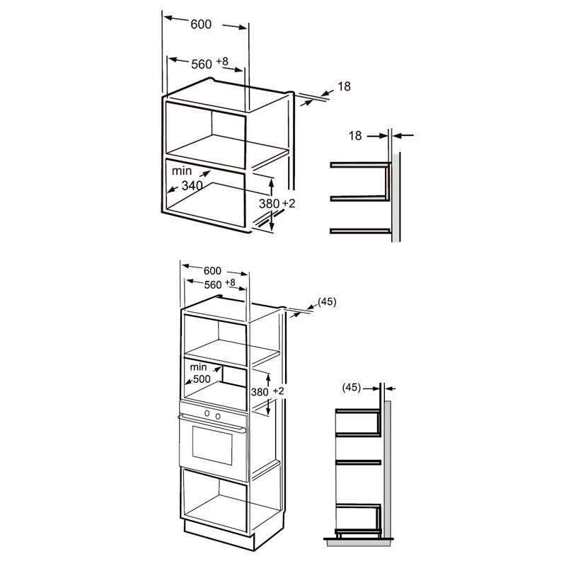 Altura mínima del hueco de encastre