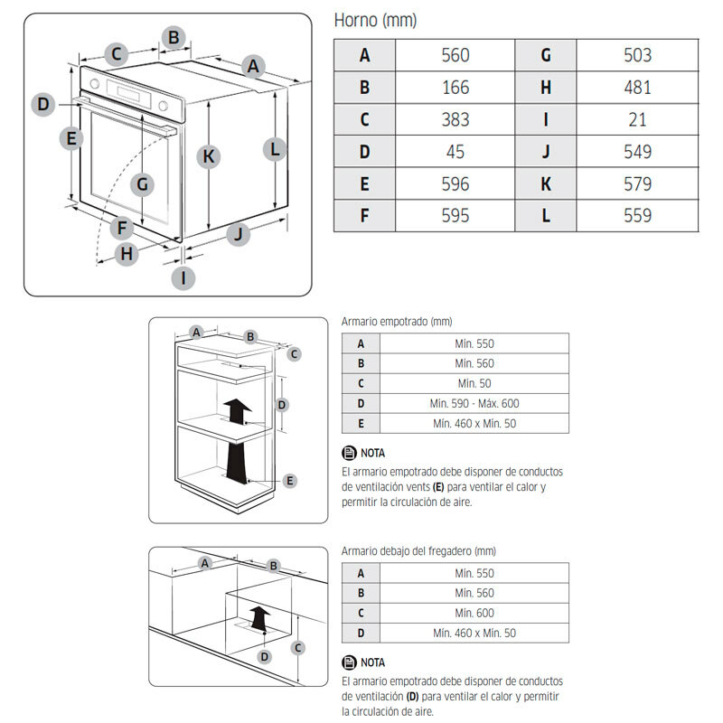 Altura mínima del hueco de encastre