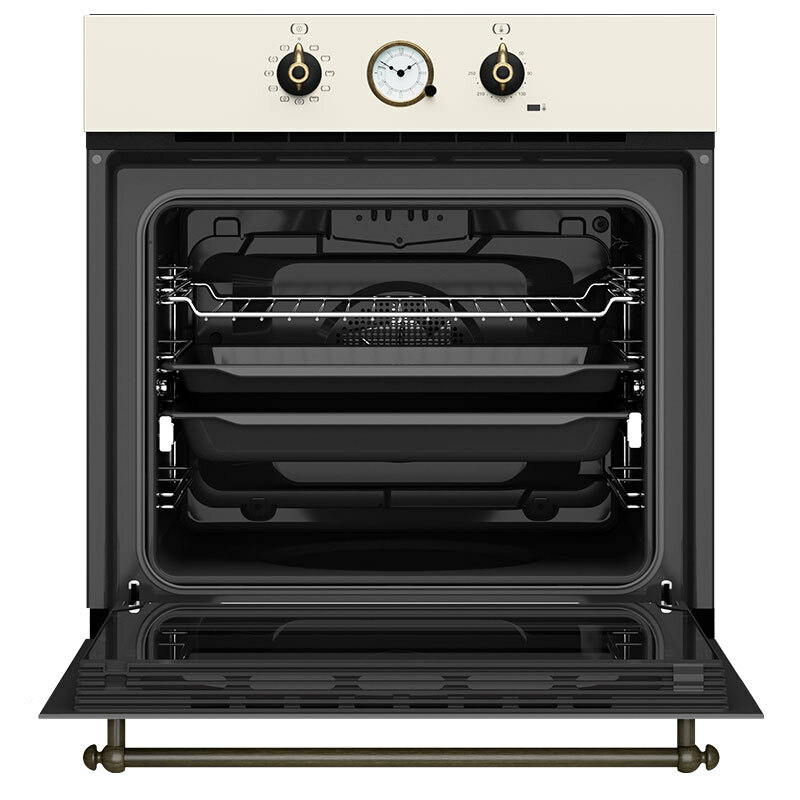 Horno multifunción integrable Teka HRB 6300 VN color Vainilla con 70 L de capacidad neta. Ofrece 9 funciones SurroundTemp, limpieza HydroClean PRO, guía telescópica Plus-Extension y puerta de doble cristal. Clase energética A y potencia máxima 3215 W para un rendimiento homogéneo y fiable.