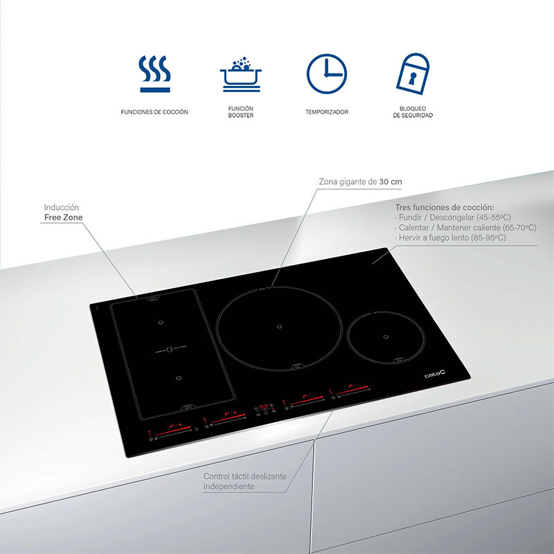 Placa de inducción CATA INSB 8021 BK/A – 80 cm, Zona flex 30 cm, Booster 7.200 W