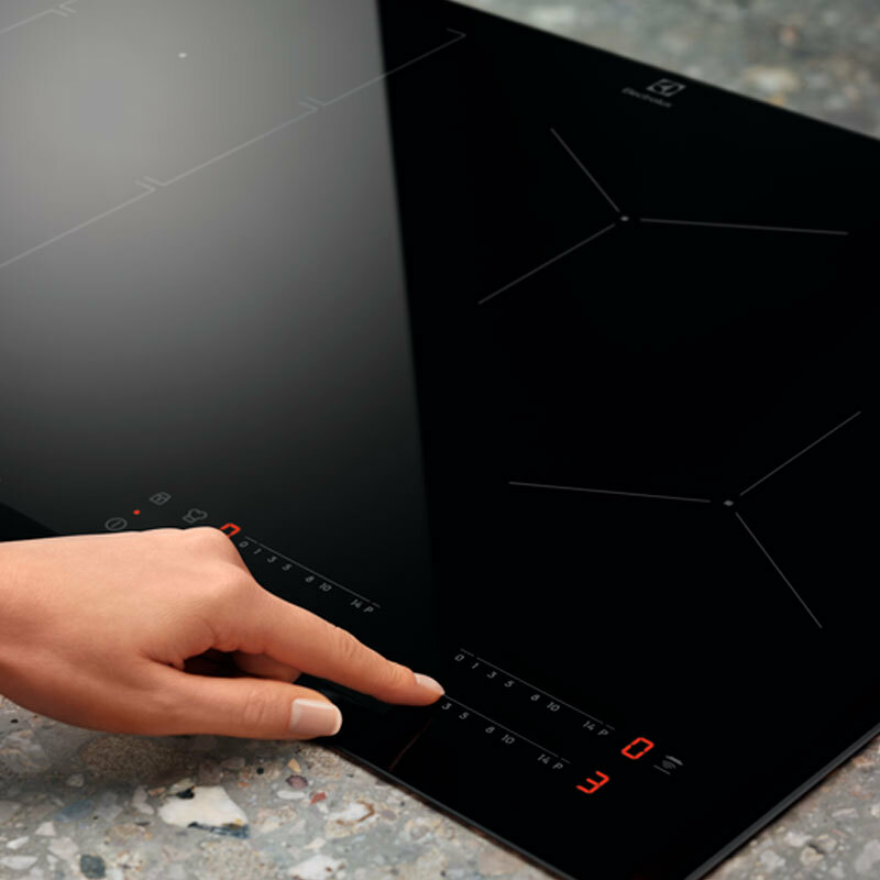 Placa de inducción Electrolux LIT6340CK de 60 cm y estética sin marco que ofrece tres zonas de cocción, incluida una zona triple XL de 32 cm y 3,6 kW. Incorpora control táctil deslizante, PowerBoost, temporizador por zona, detección de recipientes, bloqueo infantil y Hob2Hood. Superficie en cristal negro de fácil limpieza y anclaje Easy Fix para una instalación sencilla.