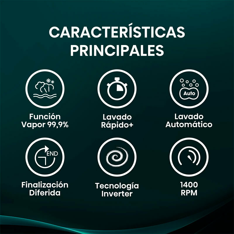 Lavadora de carga frontal Hisense WF1Q8041BW de 8 kg diseñada para uso doméstico exigente. Ofrece centrifugado hasta 1.400 rpm, motor inverter y función vapor para una limpieza higiénica. Clase energética A, programas rápidos y Auto Wash con inicio diferido y bloqueo infantil. Consumo 47 kWh/100 ciclos y 45 L por ciclo.