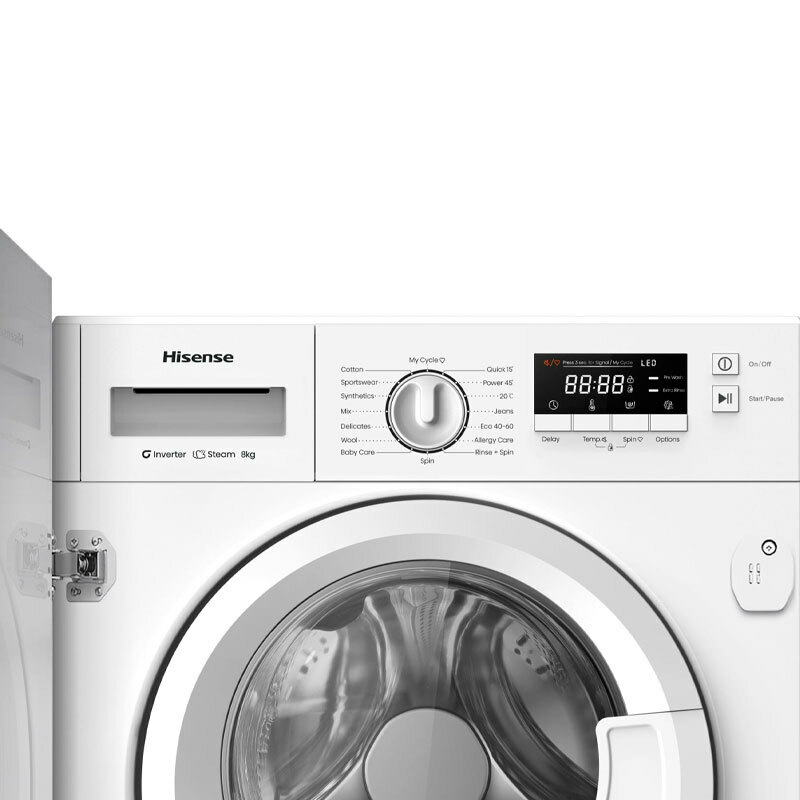 Lavadora integrable Hisense WF3M841BWIES – 8 kg, Clase A, Vapor 99,9%