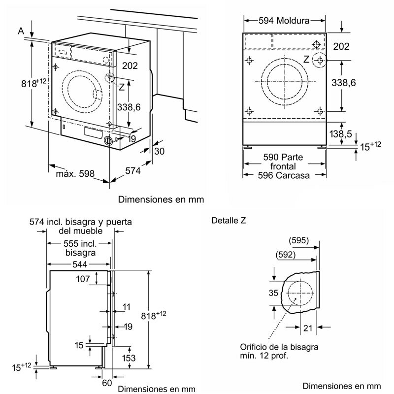 Lavadora integrable Siemens WI12W327ES – 8 kg, 1.200 rpm, iQdrive