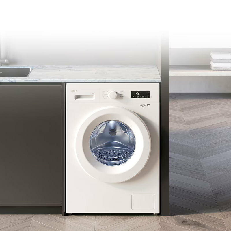 Lavadora de carga frontal LG F4X1008NWH 8 kg diseñada para uso doméstico exigente con clase energética A y motor Inverter Direct Drive que ofrece mayor durabilidad. Incorpora Steam para reducir alérgenos, 6 Motion DD para el cuidado de tejidos, conectividad ThinQ Wi‑Fi, programa rápido de 30 minutos y tapa superior desmontable para instalación en espacios reducidos.
