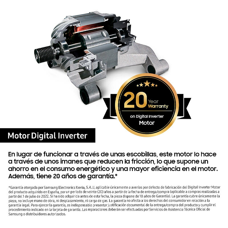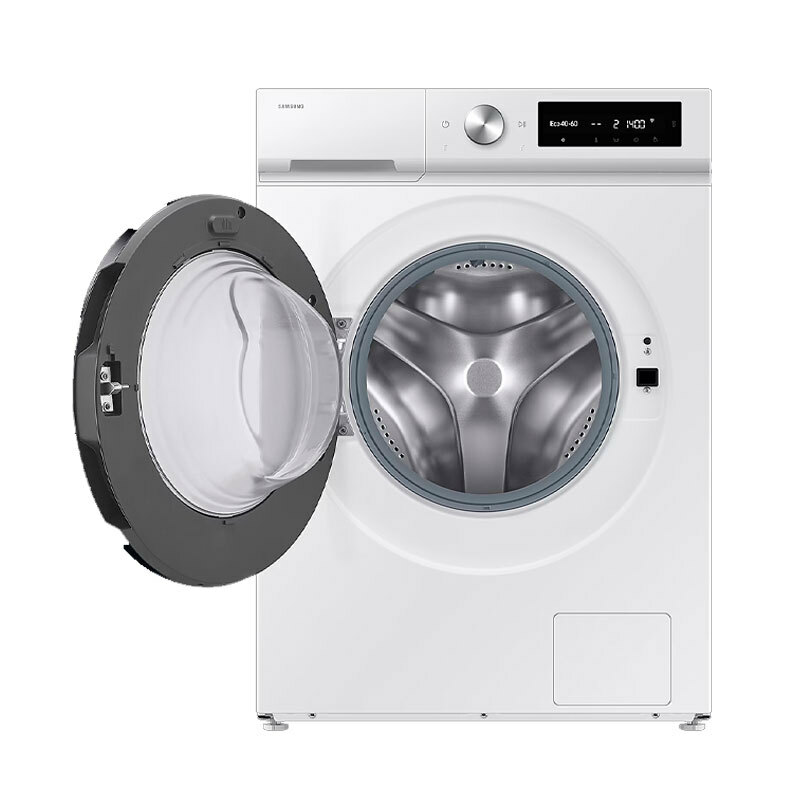Lavadora de carga frontal Samsung WW11DB7B34GWU3 de 11 kg diseñada para alto rendimiento y eficiencia. Incorpora AI EcoBubble, motor Digital Inverter con garantía extendida, conectividad SmartThings y programas con vapor para higiene profunda. Dimensiones estándar y perfil energético clase A para un consumo reducido.