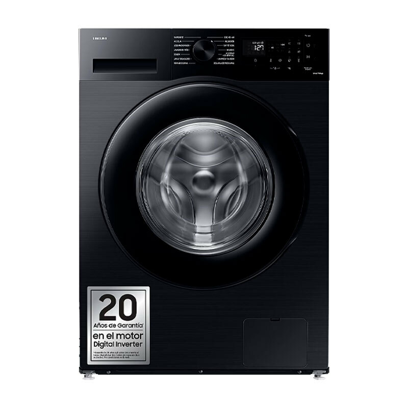 Lavadora de carga frontal Samsung WW80CGC04DABEC con capacidad de 8 kg y centrifugado de 1.400 rpm diseñada para un rendimiento eficiente y cuidado de las prendas. Integra EcoBubble para lavado en frío, motor Digital Inverter, función Hygiene Steam y conectividad WiFi para control remoto y ahorro energético.