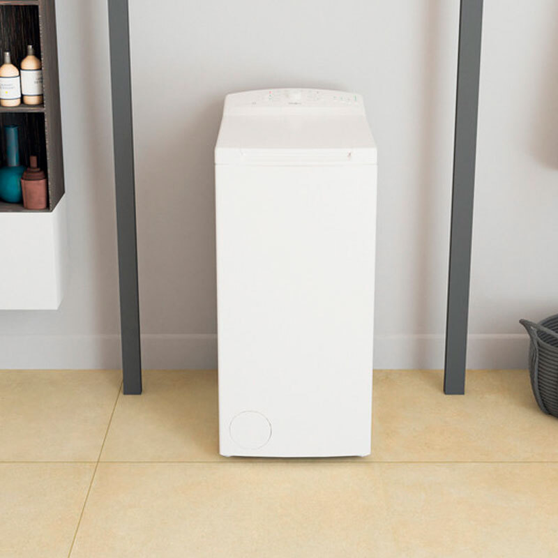 Lavadora de carga superior Whirlpool de 7 kg diseñada para uso doméstico con tecnología 6th Sense que optimiza agua y energía. Ofrece programas versátiles, centrifugado eficiente y diseño compacto 40x90x60 cm para espacios reducidos, facilitando un lavado fiable y cómodo.