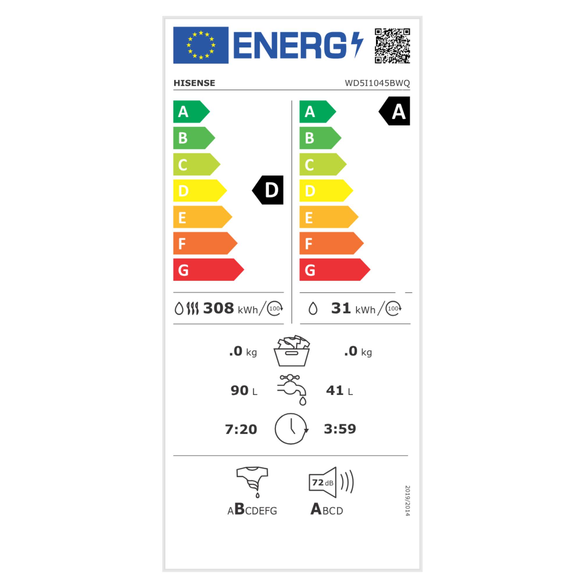 Lavasecadora Hisense WD5I1045BWQ de instalación libre diseñada para altas capacidades y eficiencia. Ofrece 10,5 kg de lavado y 6 kg de secado, motor Inverter, autodosificación, funciones de vapor y conectividad Wi‑Fi junto a programas rápidos y ahorro energético en lavado.