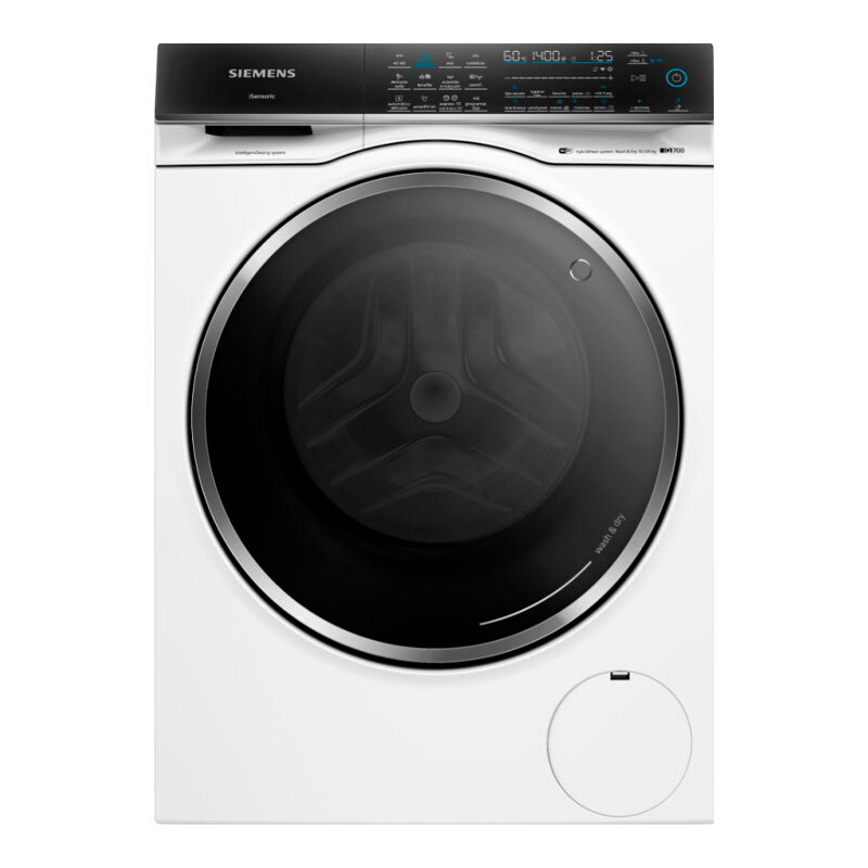 Lavasecadora Siemens WN54C2A0ES con gran capacidad de lavado de 10,5 kg y secado de 6 kg, equipada con dosificación automática i-Dos, conectividad Home Connect y motor iQdrive. Cuenta con centrifugado 1.400 rpm, programas Eco 40-60 y express, AutoDry y smartFinish para cuidado eficiente de tejidos y ahorro energético.